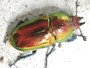 3本の前に突き出た角がとっても格好良く、また体色も光沢の強い朱色?