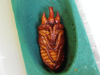 人工蛹室を作る際も、幼虫が作った蛹室を見ながらそれにあった