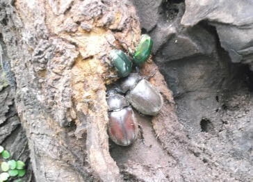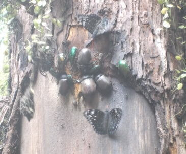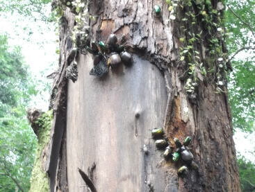 いました、いました!カブトもカナブンも蝶も集まっています。ちょっと離れて全体図を見てみると・・・・