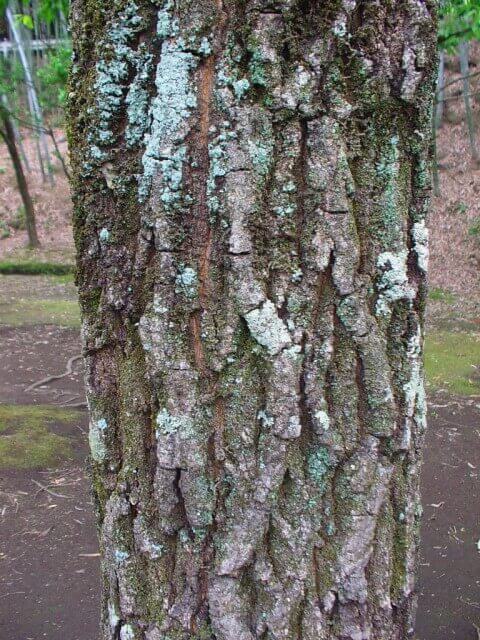 樹の胴回り部分、これがクヌギの樹皮ですね。表面はゴツゴツとして盛り上がりがあり、波打っているようにも見えます。