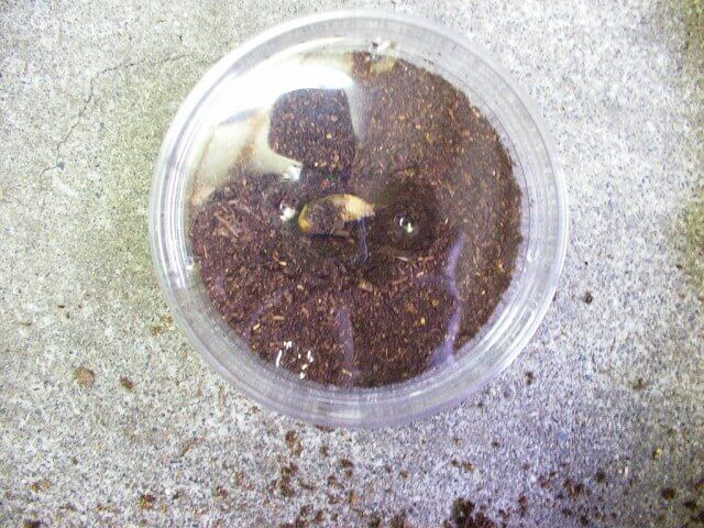 一頭だけ蛹で出てきた個体は同じようにプリンカップにマットにて管理します。ただし既に蛹なので、簡易的に人工蛹室を作ってやります。