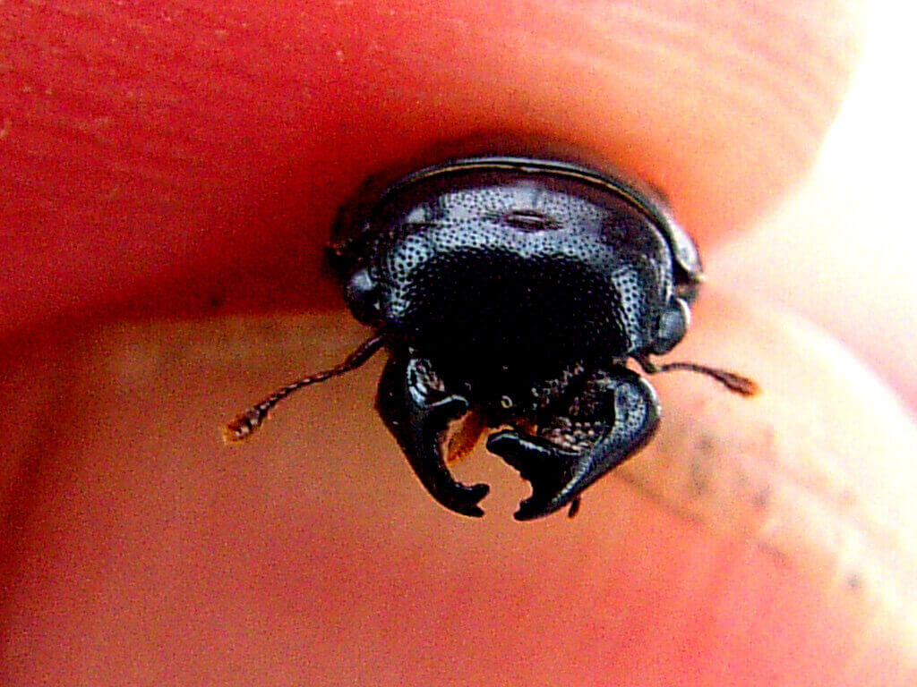 ケシキスイの♂の大アゴは体の割には発達し、左右非対称になるのが特徴だそうです。