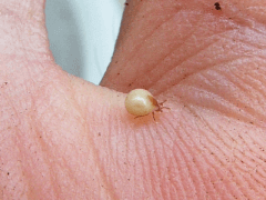 上記画像にあるような白っぽいダニより下記画像にあるオレンジ~茶色のダニの方がより良くないと聞きます。