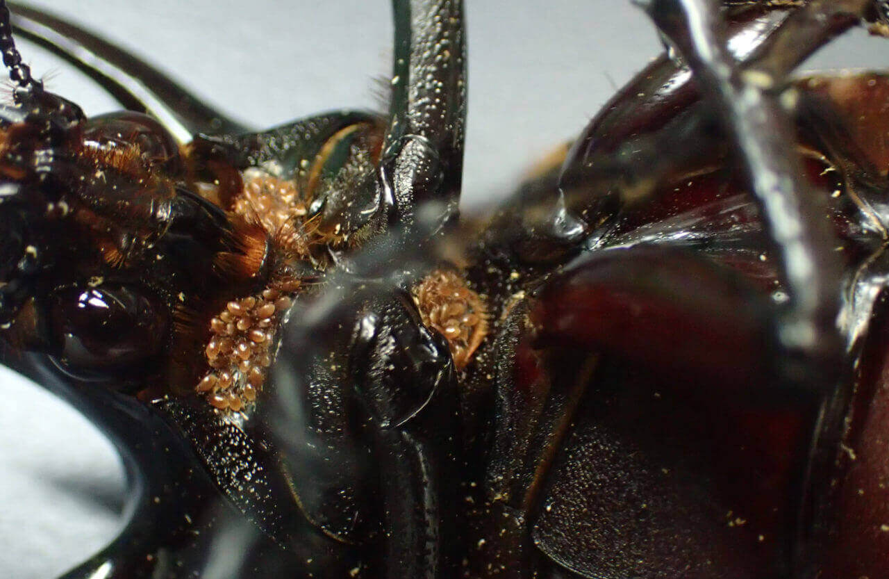 クワガタ腹部に付くダニ
