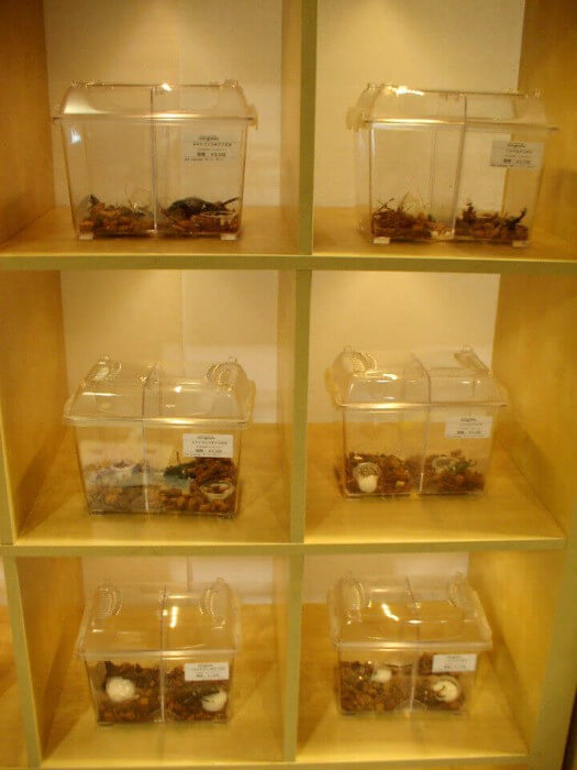 会場の中央には「虫くじ」の当たり賞である虫達が展示されました。