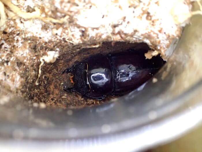 蛹室内で羽化したスマトラオオヒラタ♀成虫
