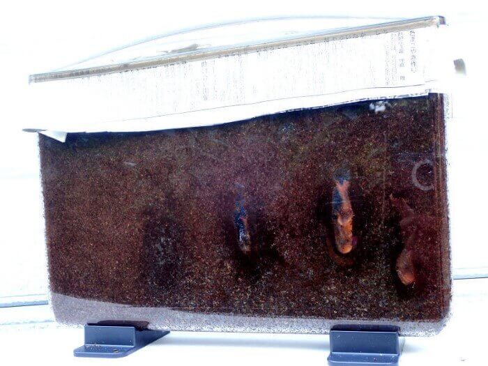 6/15の日記で、「見える観察ケース:ラクぼっくす」に入れた国産のカブトムシ幼虫が前蛹化。