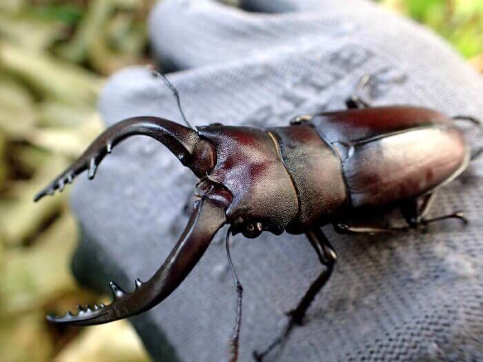本土ノコギリの体色はどちらかというと赤~黒褐色タイプ。凄い珍品というわけではありませんが、なかなかここまで真っ黒な個体はなかなかお目にかかれないのも事実です。