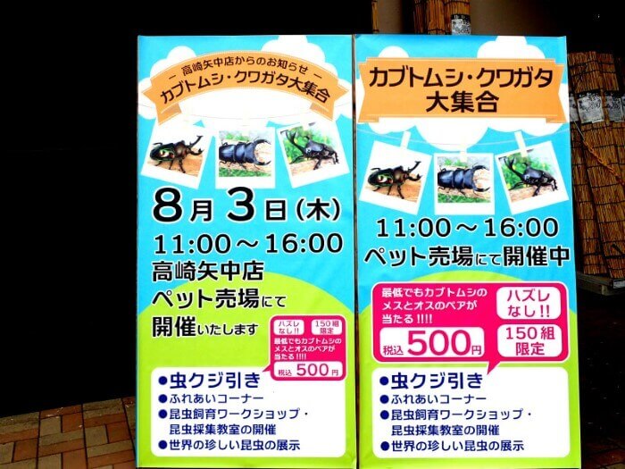 先日の8/3に群馬県 高崎市のセキチュー矢中店にて、月夜野きのこ園主催の【カブトムシ・クワガタ大集合】のイベントが行われました。