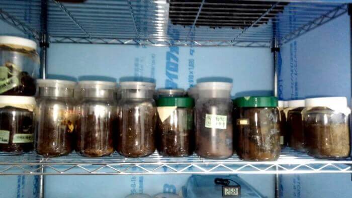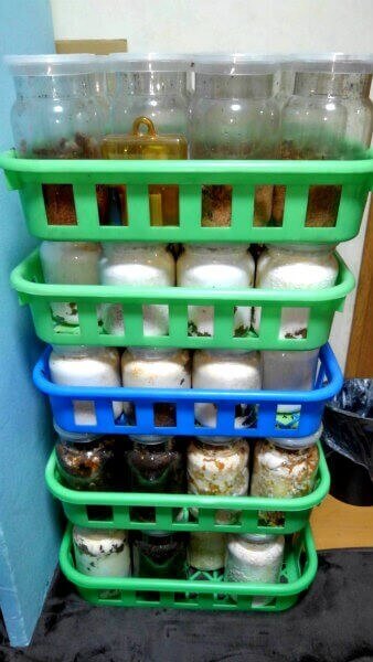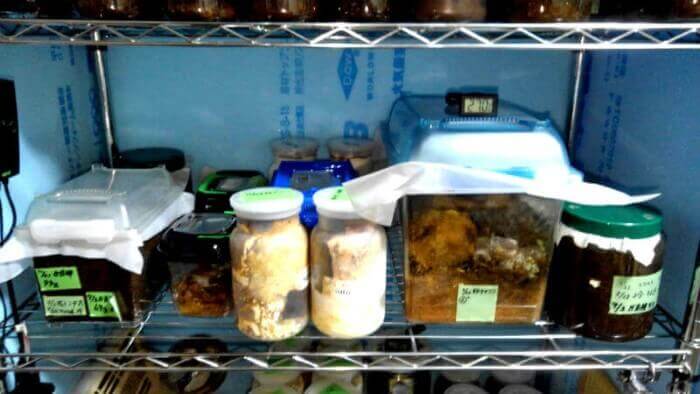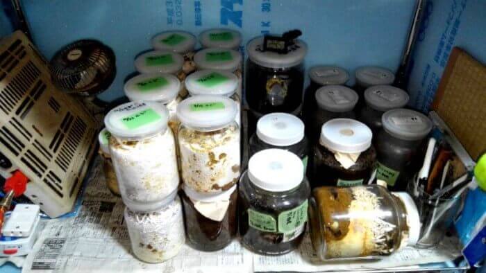 温室外ではありますが、右側には常温管理することが菌糸ビンの姿も見えます。