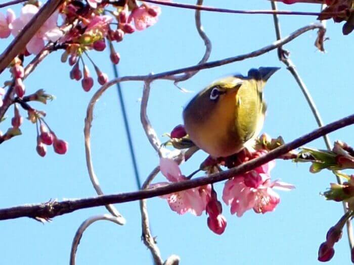 こちらの寒緋桜にはメジロの姿も見られました。