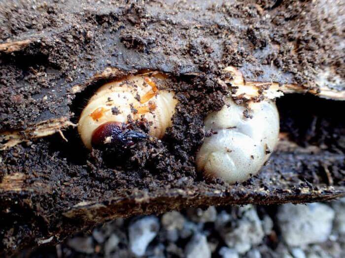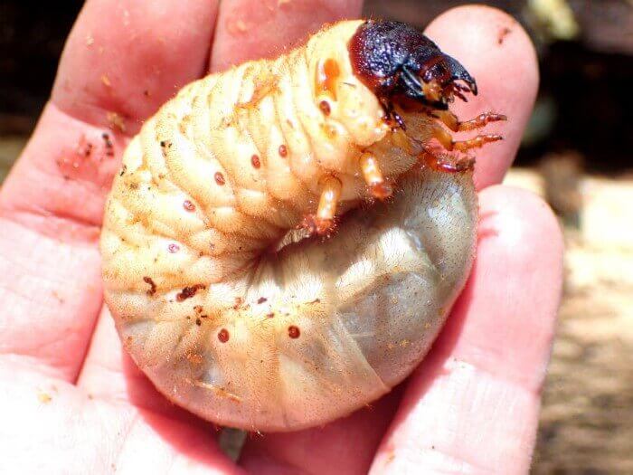丸々と太ったカブトムシの幼虫。