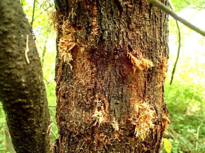 甘酸っぱく発酵した樹液が出ているハルニレの木です。
