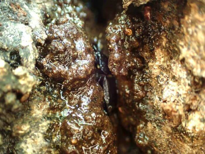 樹液だらけの小さな裂け目にクワガタの姿が!