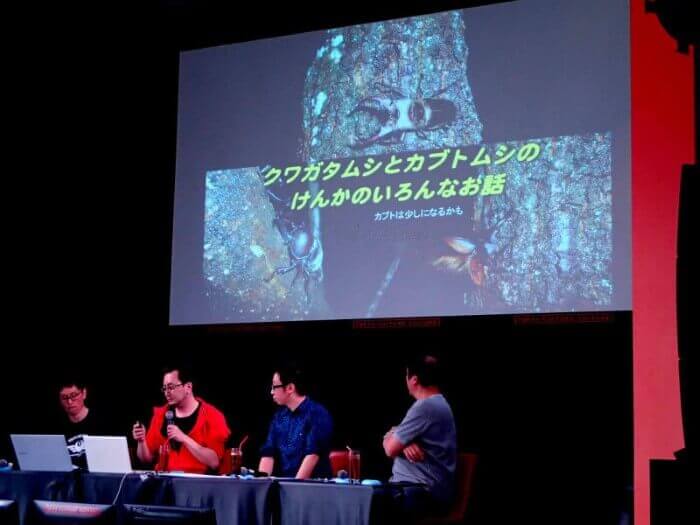 先程紹介した本郷先生(左)を始め、皆さんも既にご存知のクワカブ界の著名人であるむし社:飯島さん(中央)、ワイルドプライド:塩倉さん(右)にもゲストとしてお越し頂きました。
