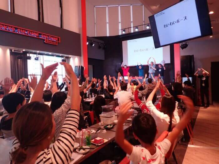 クワガタワイワイ恒例のこの「ワイワイポーズ」を会場みんなで行いいよいよイベントスタートしました!