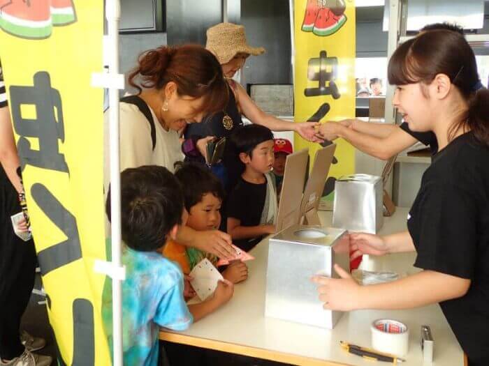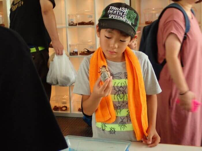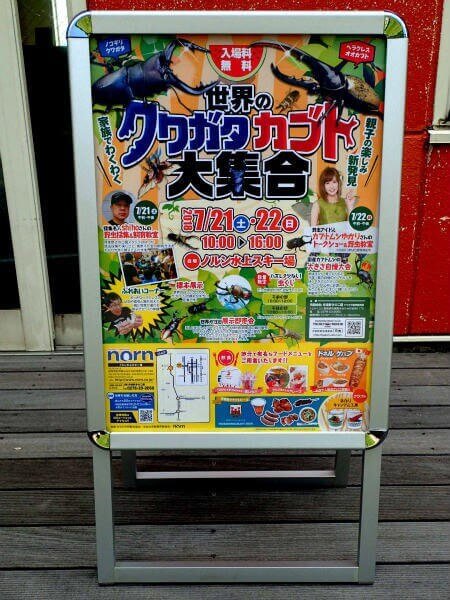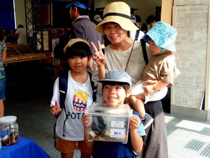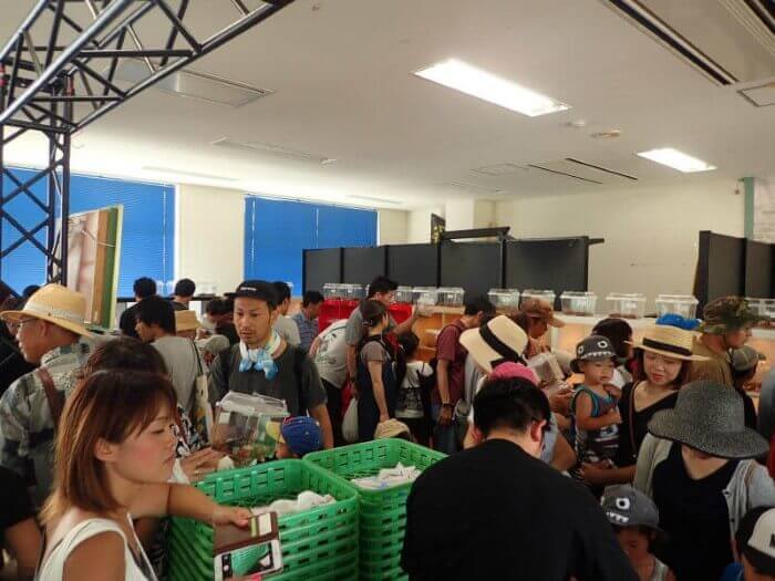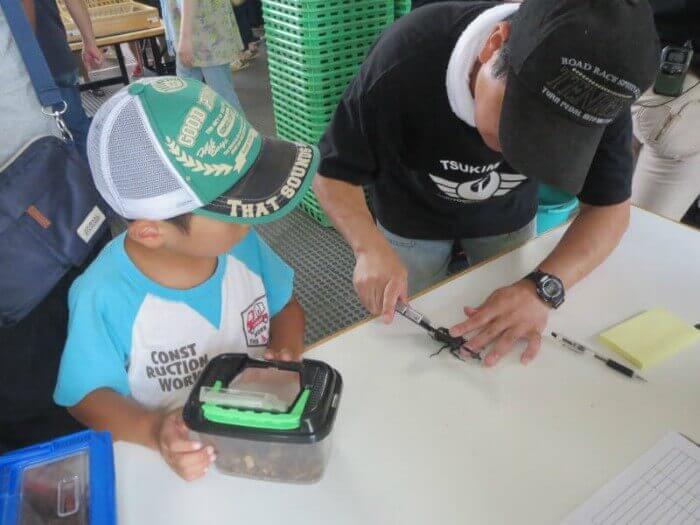 今回も土日の昆虫教室イベントや展示販売、虫くじ、用品販売、国産カブトムシ大きさ自慢大会などが行われました。