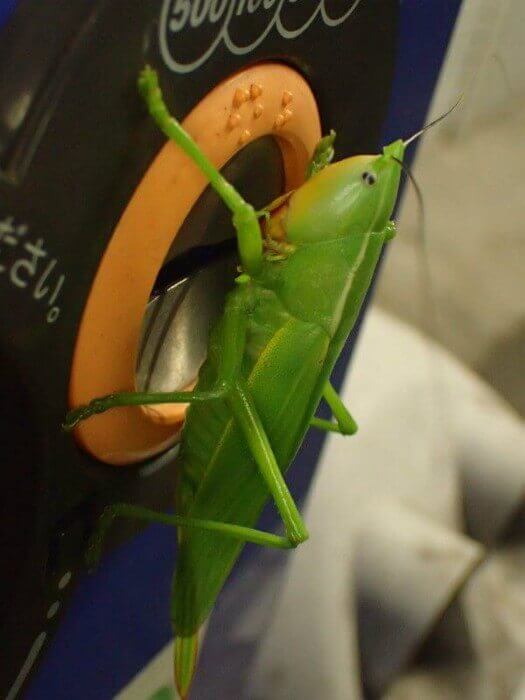 近くの自動販売機にはとっても大型のバッタが!