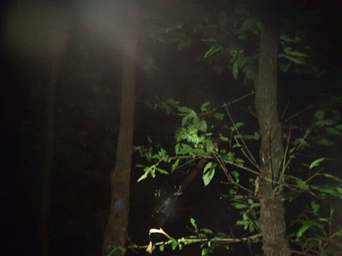 真っ黒な森の中、沢山の懐中電灯の光がまるで灯台の光のように走り回っていました!