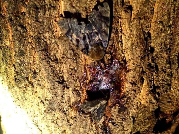 今年初めて行く場所だったのですが、やはり樹液の量は少なく、乾燥していました。