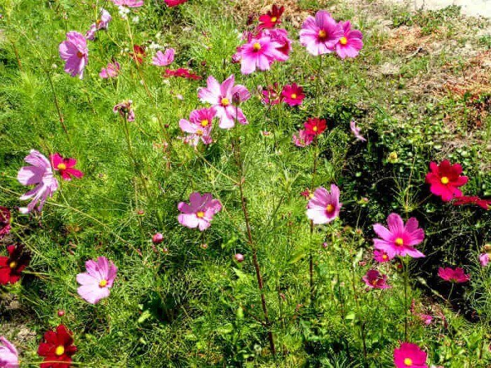 少しピークを過ぎた感じがありますが、色とりどりのコスモスが元気いっぱいに咲いていました。