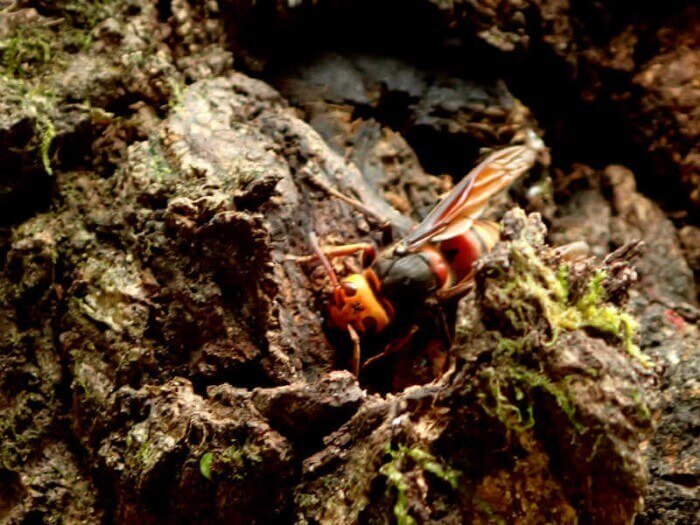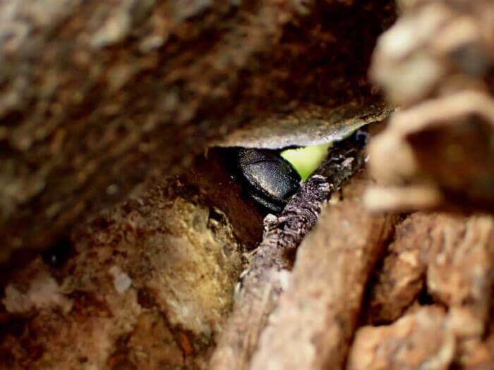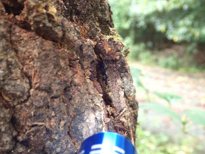 樹皮裏の狭い隙間にきっちりと収まっています。