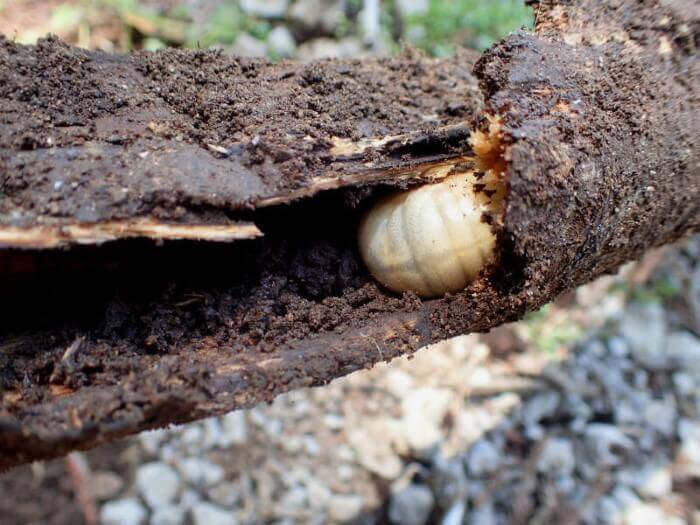 掘り進めると、こんな感じで国産カブトムシの幼虫が姿を現してくれます。
