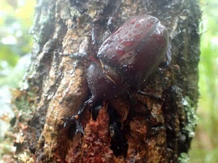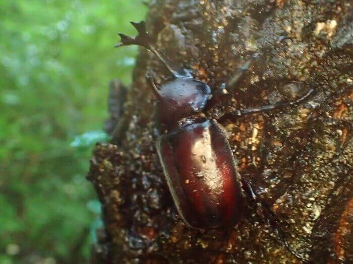 カブトムシ♂と樹皮裏にドルクス系らしき姿が。