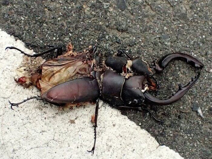 途中に寄ったセブンイレブンの駐車場で見つけたノコギリクワガタの死骸。