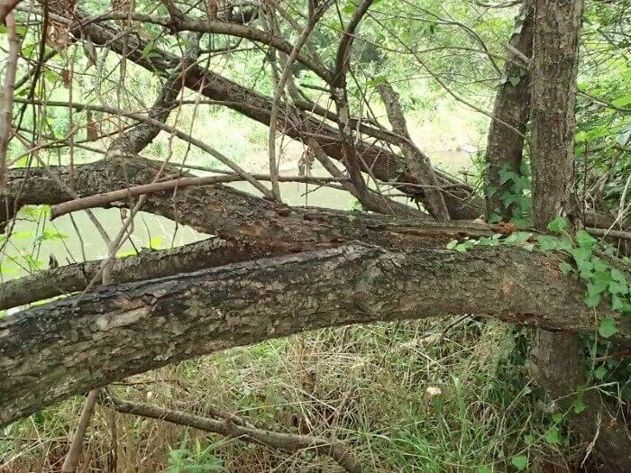 この倒れきったヤナギの木に辿り着きました。