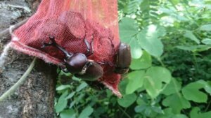 樹の小さなウロ(穴)や樹皮裏などを見て、曲がった針金などで引っ張り出す方法。