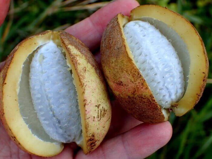 熟しているアケビは少し圧を加えただけで簡単に割れます。