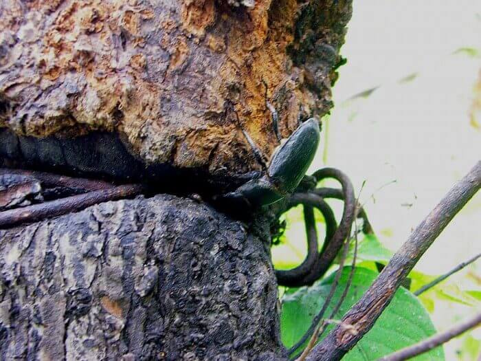 くしくもその箇所から樹液が染み出ているようでクワガタ達が集まってきます。