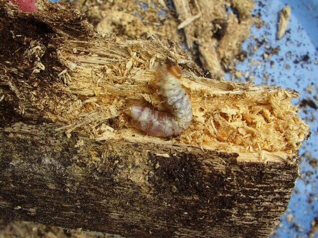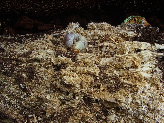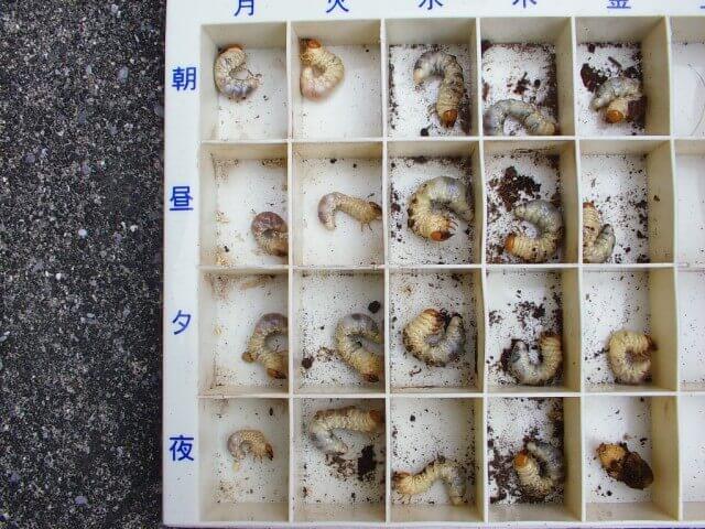割り出しのタイミングは、基本的にはケース側面や底面に幼虫が見え始めてからになります。但しマット状態が悪い場合、すべての幼虫は材に入り込んでマットには出てない場合もあります。