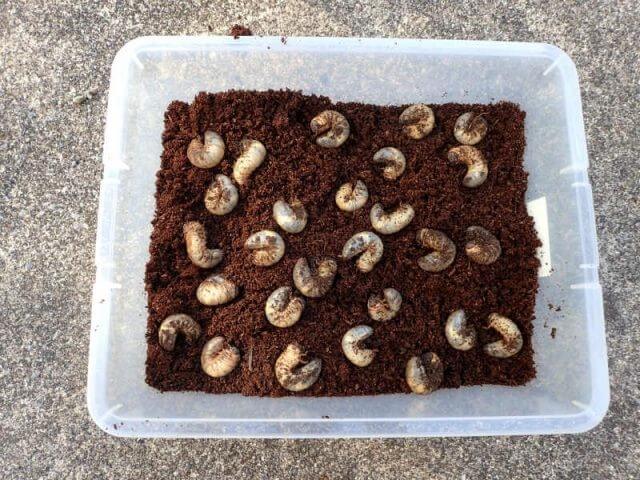 この竹林の手前に隣接する叔父の畑で採れたカブトムシの幼虫です。