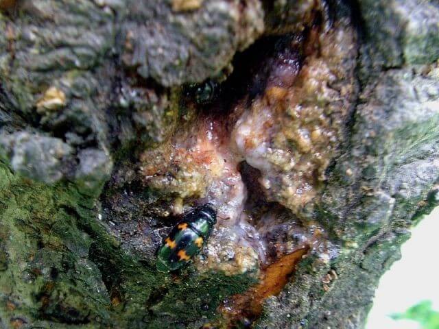 3本の内の一本にだけ樹液が出ている箇所があり、