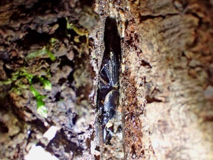 こちらにも樹液溜まりに頭を突っ込んだ、ネブトクワガタの姿がありました。