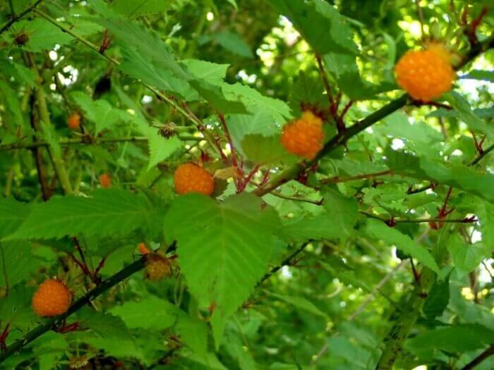 どちらも生食出来る美味しい木苺(キイチゴ)ですが、私は個人的にはオレンジ色のモミジイチゴの方が好みですね^^