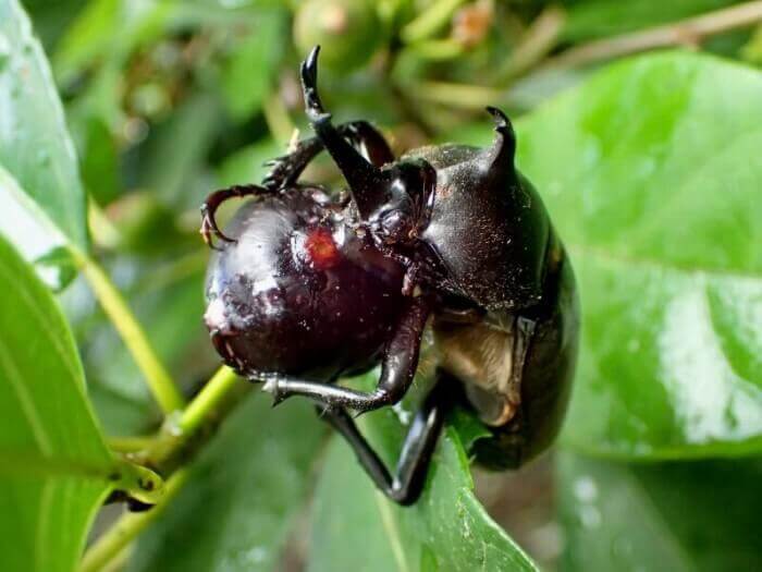 既に黒くなるほど熟しており、中には表皮が破裂して裂け、甘い汁がしたたり落ちているものもありました。