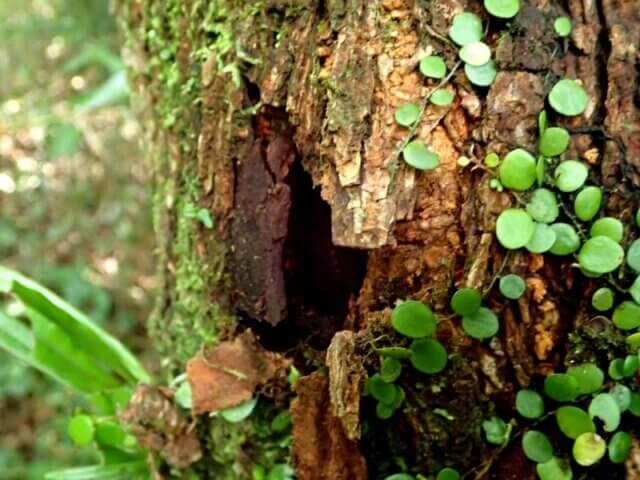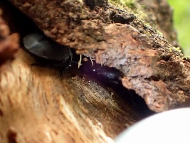 こちらのクヌギの樹皮裏にクワガタの姿を発見!
