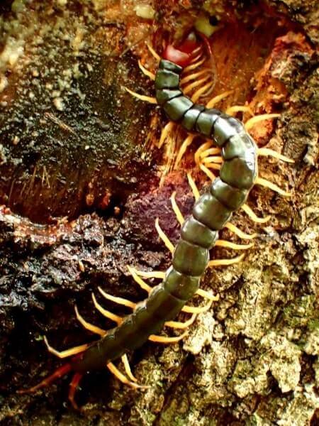 このムカデを刺激しないように、木の反対側に回って蹴ってみると、
