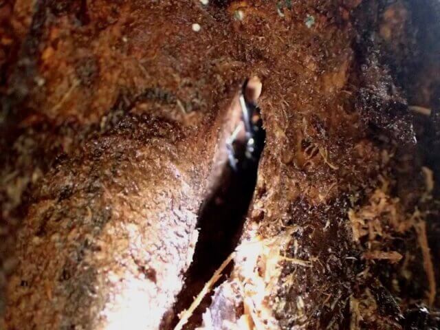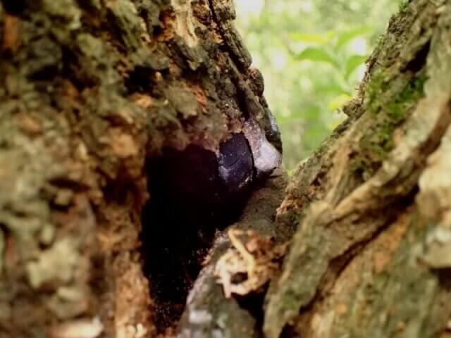 ハルニレの枝分かれした箇所に出来た樹皮裏にクワガタの姿を発見しました^^