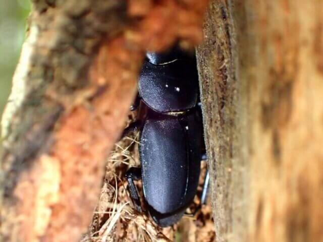 クヌギの木の樹皮裏に、またしてもコクワガタ♂の姿を見つけました。