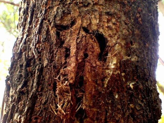 前回採集と同様に蹴り採集ではなく、ウロ&樹皮裏採集をメインに探していくと、