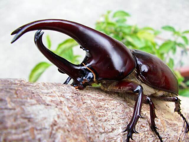大型個体になると、上から覆いかぶさるような大きな胸角は、まるで小さなヘラクレスを連想させるほどでとても格好良いです。