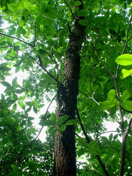 こちらの細いハルニレには下の方にヒラタクワガタ♂の姿。