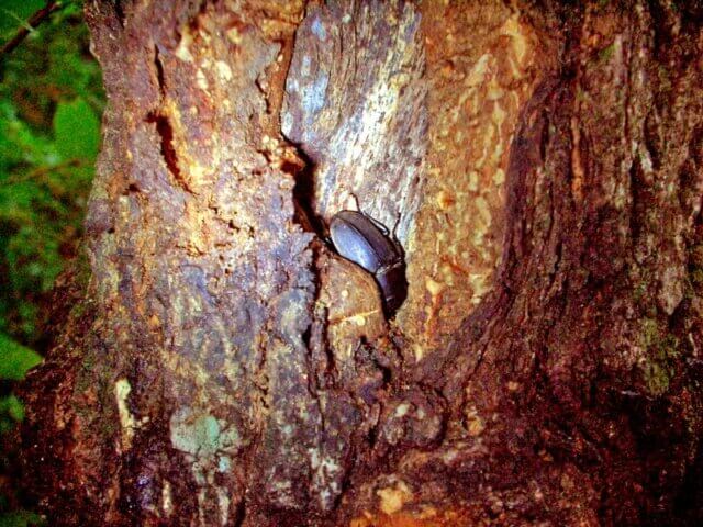 こちらのクヌギの木の樹皮隙間にはコクワガタ♀