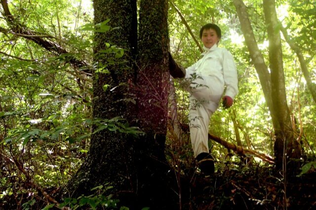 K氏がいきなり木を登り始めました!