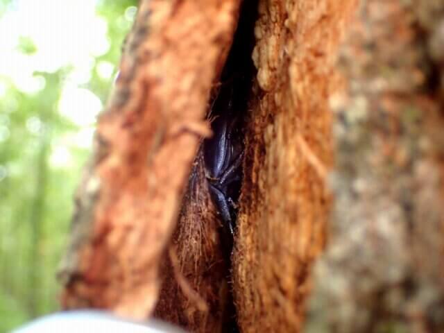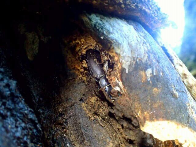 こちらのハルニレの隙間にはコクワガタ♂の姿を発見。