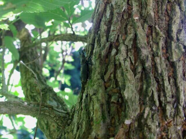 最初に見つけたのは、ハルニレの樹上にいたコクワガタ♂